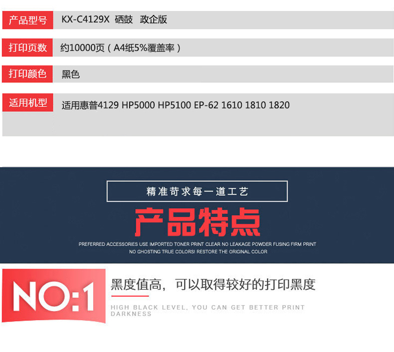 凱欣KX-C4129X 適用惠普4129 HP5000 HP5100硒鼓佳能EP-62 1610 1810 1820 全國(guó)統(tǒng)一價(jià):345元