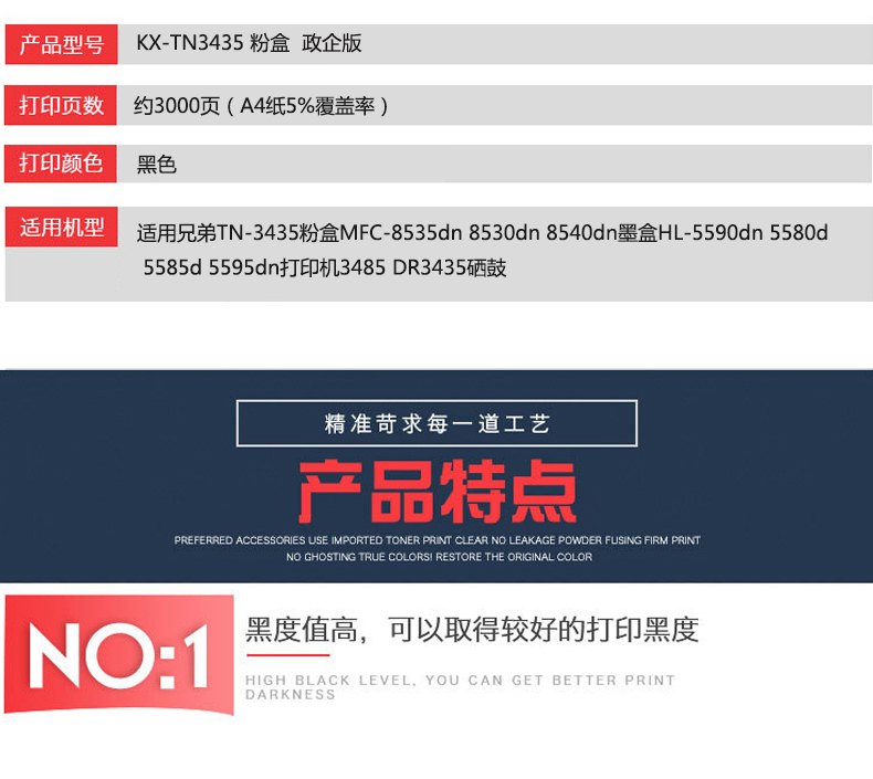 凱欣KX-TN3435 適用兄弟TN-3435粉盒MFC-8535dn 8530dn 8540dn墨盒HL-5590dn 5580d 5585d 5595dn打印機(jī)3485 DR3435硒鼓 全國統(tǒng)一價:286元